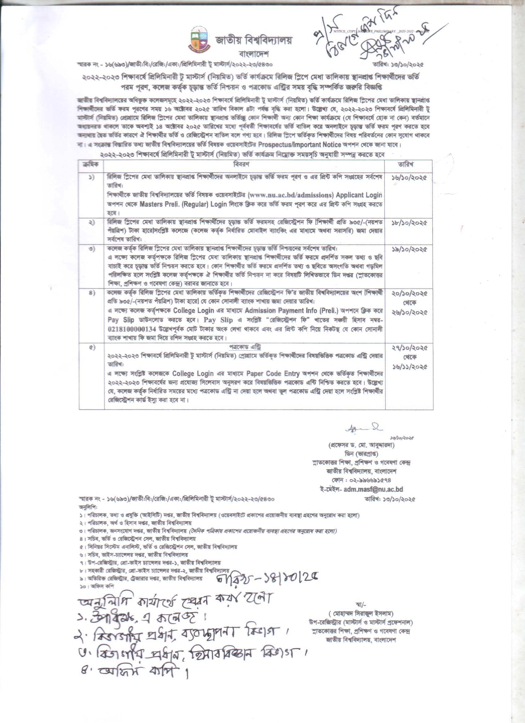 ২০২২-২০২৩ শিক্ষাবর্ষে প্রিলিমিনারি টু মাস্টার্স ভর্তি কার্যক্রমে রিলিজ স্লিপের মেধাতালিকায় স্থাপ্রাপ্ত শিক্ষার্থীদের ভর্তি বিজ্ঞপ্তি ।