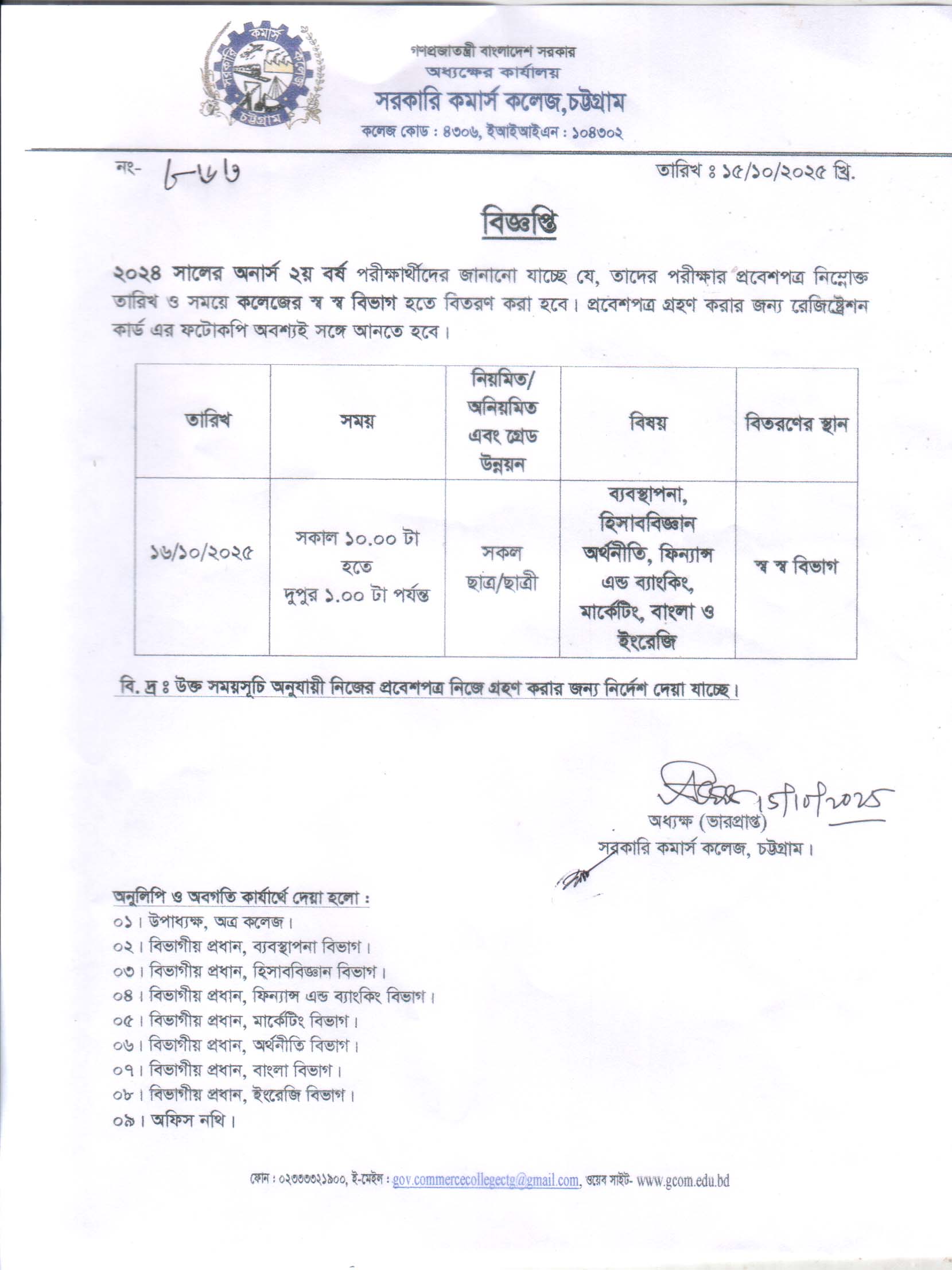College Code : 4306 Commerce College Road, Agrabad, Sadarghat, Chattogram; 02333316209, 02333321900